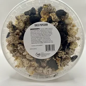 Introducing our delicious Oreo Popcorn, the ultimate snack for all popcorn and Oreo lovers! Made with premium quality kettle corn and coated with smooth and creamy Oreo flavor, this popcorn is sure to satisfy your sweet tooth. Each bite is a perfect blend of crunchy popcorn and the classic Oreo cookie taste. Our Oreo Popcorn is perfect for movie nights, parties, or snacking on the go. Try it now and experience the ultimate popcorn treat.