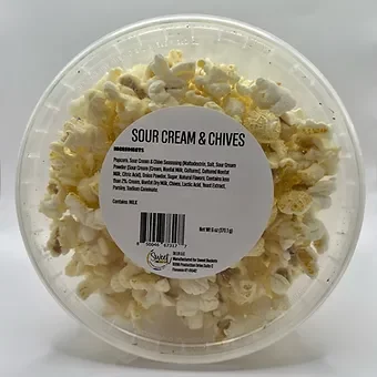 Get ready for a flavor explosion with our Sour Cream & Chive Popcorn! Made with sour cream and chive seasoning, this snack is perfect for those who love a savory taste. Our popcorn is air-popped and coated with a light layer of tangy sour cream and herbaceous chive. Grab a bucket for your next movie night or snack break.